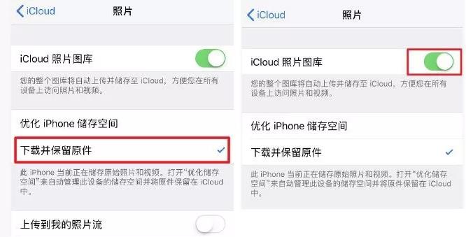 完成所有照片的原件下載后,在「設(shè)置 → 賬戶 → iCloud → 照片」中關(guān)閉 iCloud 照片圖庫,此時所有的照片就變成了此設(shè)備上的本地數(shù)據(jù)。