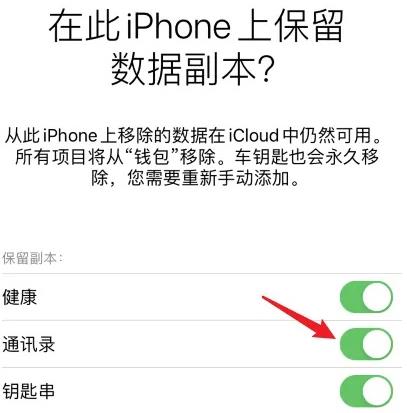退出時將保留副本選項后方的開關(guān)開啟即可,如健康、通訊錄、鑰匙串、Safari等都開啟。