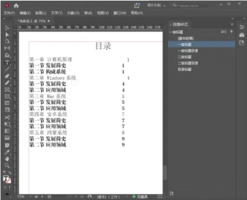 1、在InDesign中新建文檔并導(dǎo)入文本,做目錄之前最主要的就是在文檔標題上應(yīng)用段落樣式,例如,文章一級標題、二級標題,甚至是三級標題,如圖所示。