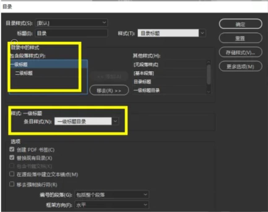 2、生成目錄:執(zhí)行【版面-目錄】命令,在彈出的對話框中添加生成目錄的段落樣式,而且生成目錄的每個段落樣式都要指定一個目錄標題的段落樣式,這主要是為了便于統(tǒng)一目錄版式,如圖所示。