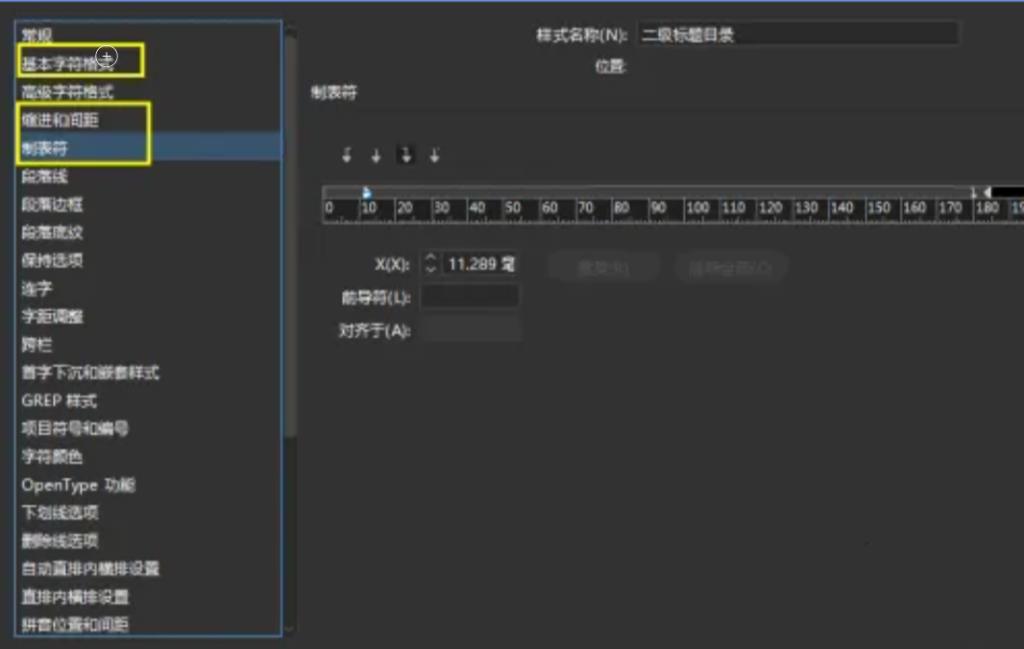 4、我們可以將光標插入目錄的一個標題之中,然后在段落樣式面板中會自動顯示該標題所應(yīng)用的段落樣式,然后雙擊該段落樣式進行修改,修改內(nèi)容主要是字體、字號、首行縮進或左縮進以及添加治標符等,如圖所示。