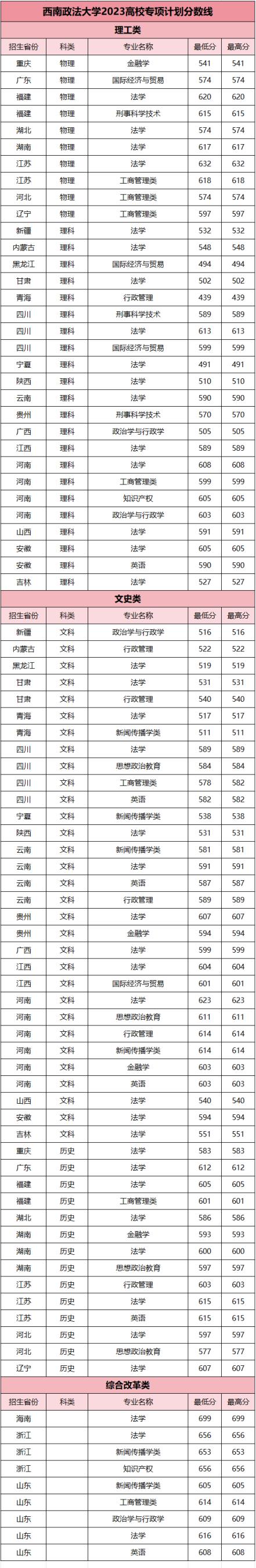 西南政法大學(xué)2023高校專項計劃在重慶、廣東、福建、江蘇、河北、四川等省份文史類、理工類均有進行招生,招生專業(yè)有金融學(xué)、刑事科學(xué)技術(shù)、法學(xué)、新聞傳播學(xué)類等專業(yè)。以下是西南政法大學(xué)2023高校專項計劃分數(shù)線匯總,可供2024高考考生查看。