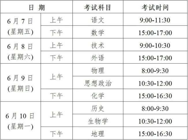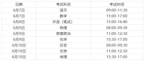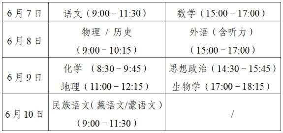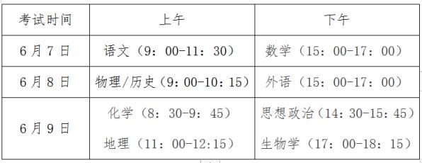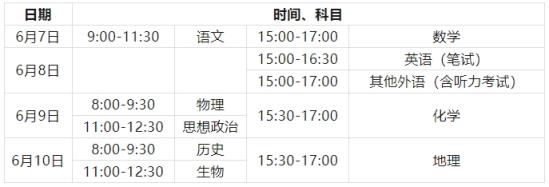 3+3新高考地區(qū)的考試時間主要從6月7日開始,到6月10日結(jié)束,6月7日-8日考必考科目,6月9日-10日考選考科目,各省市具體時間安排如下: