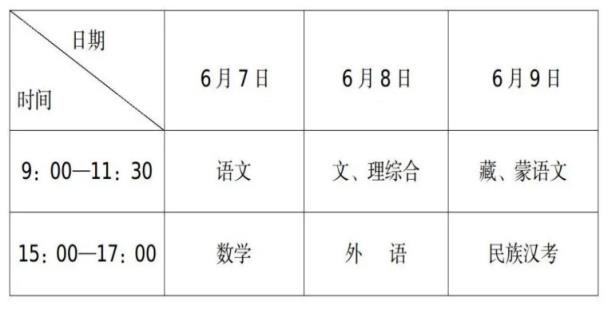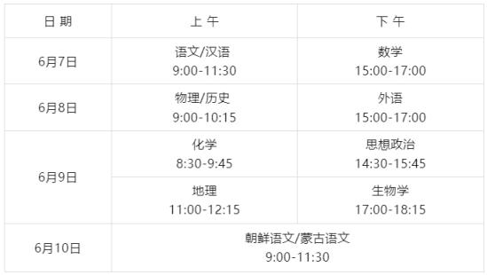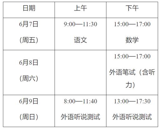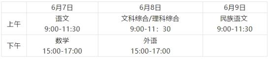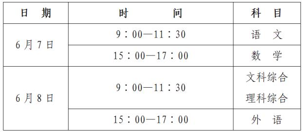 傳統(tǒng)高考地區(qū)的高考時間安排是從6月7日開始,最晚到6月9日結(jié)束。語文和數(shù)學(xué)科目安排在6月7日進(jìn)行;文理綜和外語安排在6月8日進(jìn)行;部分地區(qū)的民族語文安排在6月9日進(jìn)行。各省市具體時間安排如下: