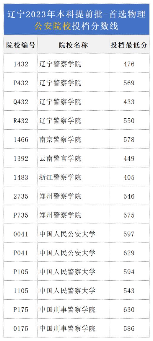 2023年高考,在遼寧省提前批招生的公安院校有遼寧警察學(xué)院、南京警察學(xué)院、云南警官學(xué)院、浙江警察學(xué)院等院校。有想法報考公安類院校的遼寧考生,可參考這些院校往年的錄取分?jǐn)?shù)線,向著目標(biāo)分?jǐn)?shù)而努力。