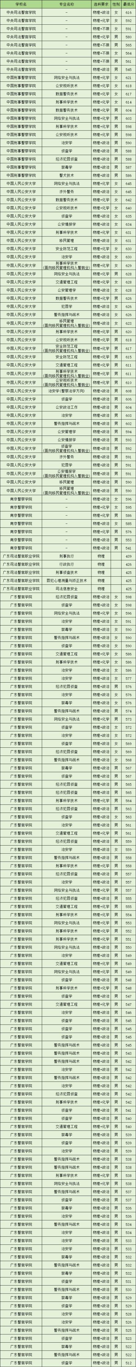各警校在廣東物理類錄取分?jǐn)?shù)線一覽表如下: