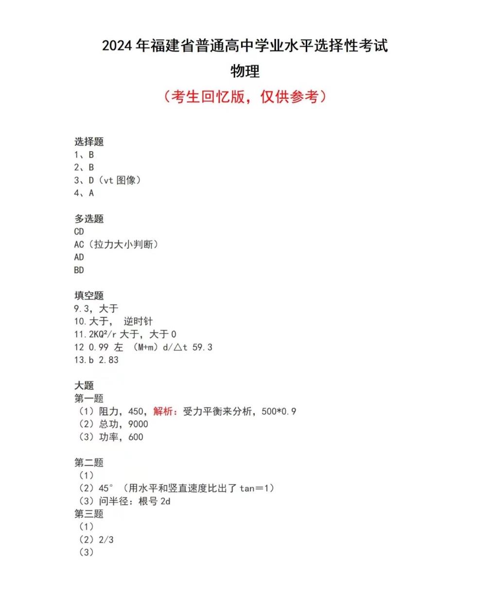2024年高考物理福建卷真題及答案,將在考試結(jié)束后公布,請大家持續(xù)關(guān)注本文!