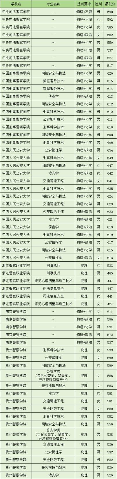 其中,中國人民公安大學(xué)歷史類最低分555分,物理類最低分613分;貴州警察學(xué)院歷史類最低分502分,物理類最低分529分。本文將整理貴州警校提前批分數(shù)線匯總。