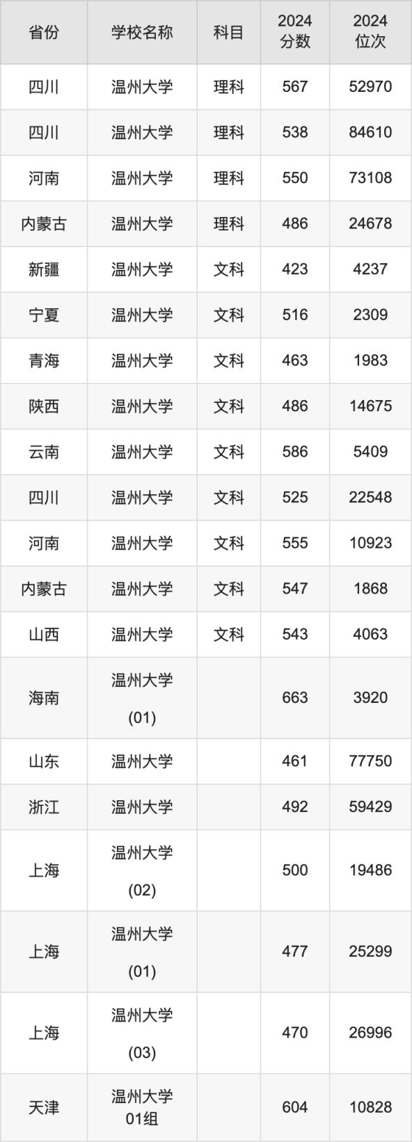 2024溫州大學(xué)錄取分?jǐn)?shù)線匯總:全國各省最低多少分能上