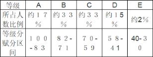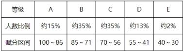 | 等級(jí) | 考生人數(shù)占比 | 分?jǐn)?shù)區(qū)間 |