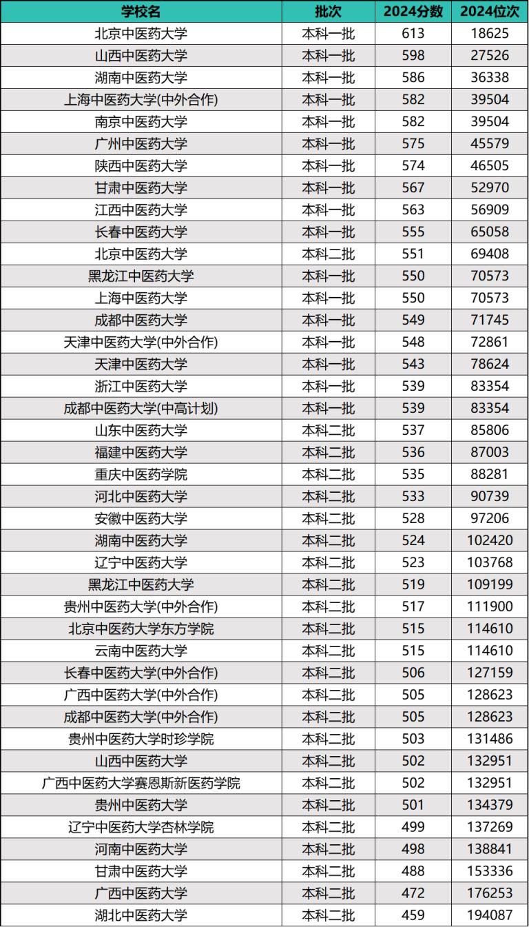 2024年全國(guó)中醫(yī)藥院校排名及錄取分?jǐn)?shù)線(前30強(qiáng))