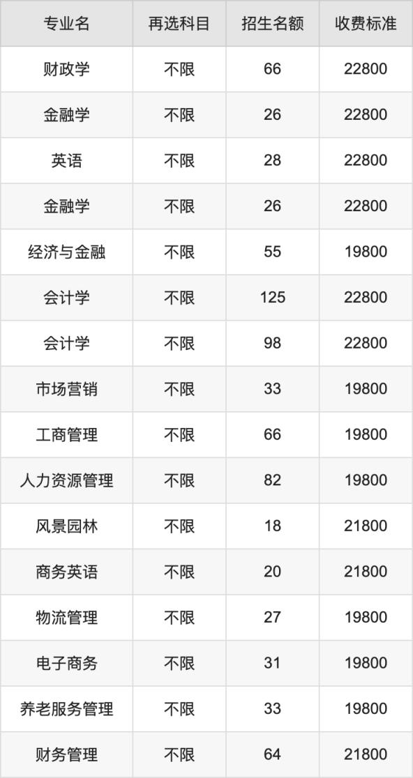 蘭州工商學院在歷史組本科批招生的各個專業(yè),每年的學費是19800元-22800元。招生人數(shù)最多的專業(yè)是會計學,2024年招125人,學費是22800元。