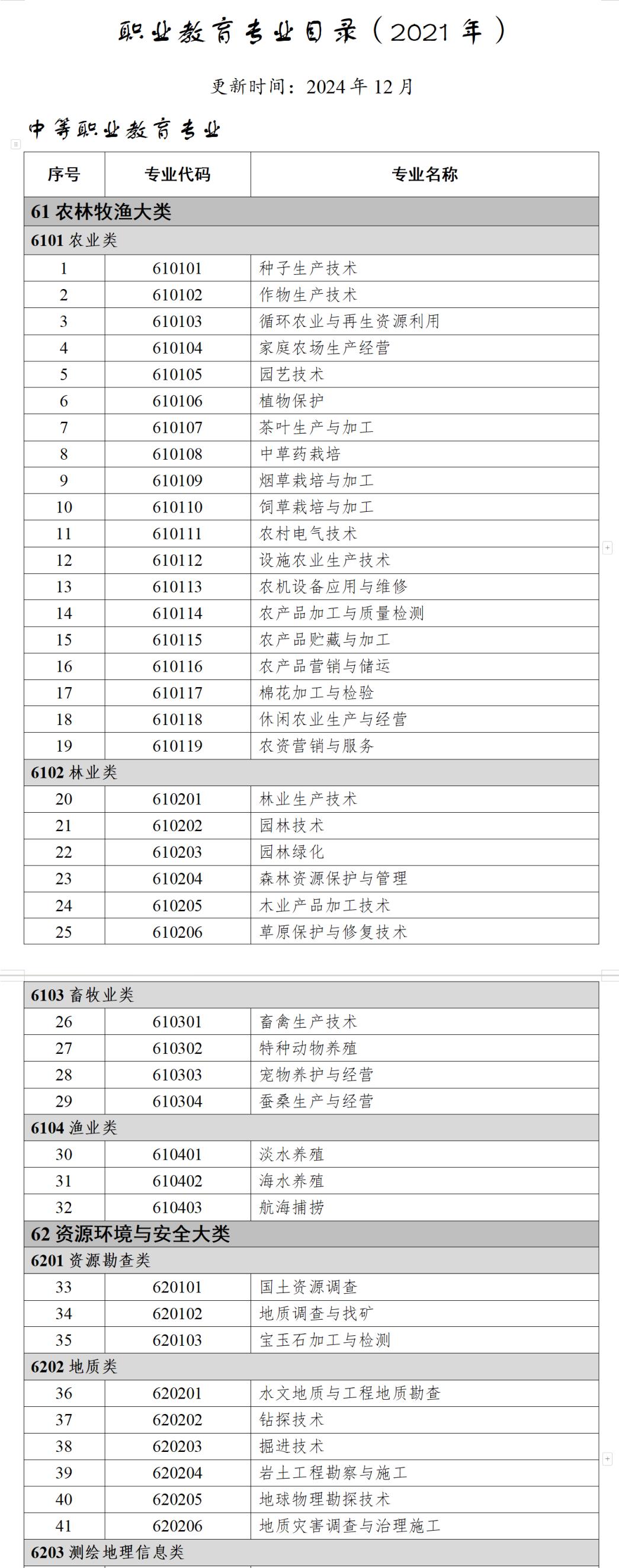| 2 | 林草保護(hù)工程 | 2102林業(yè)類 | |