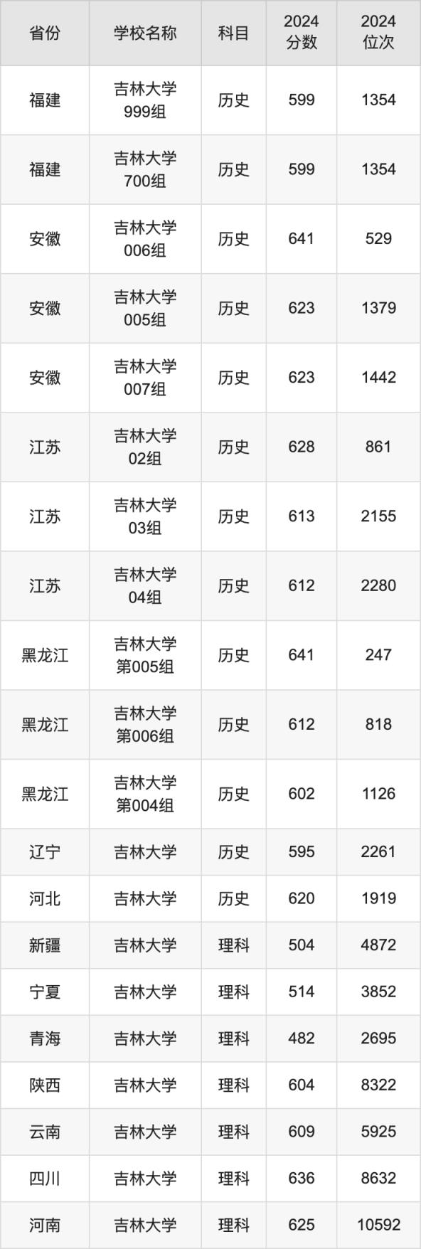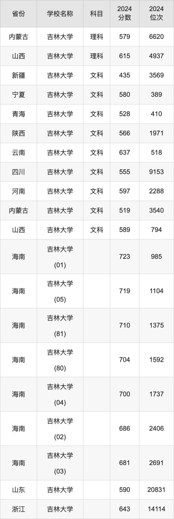 2024吉林大學(xué)錄取分?jǐn)?shù)線匯總:全國各省最低多少分能上