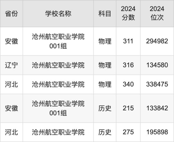 2024滄州航空職業(yè)學(xué)院錄取分?jǐn)?shù)線匯總:全國各省最低多少分能上