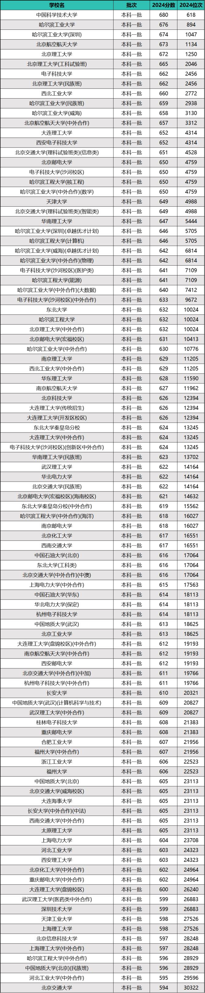 二、2024各大理工類院校錄取分?jǐn)?shù)線