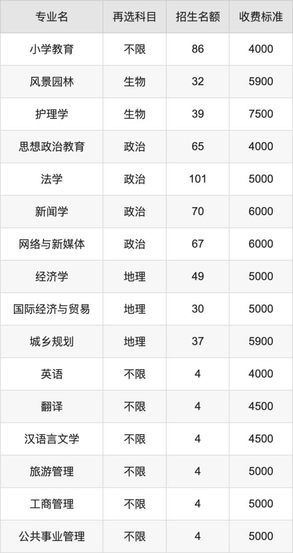 吉首大學(xué)在歷史組本科批招生的各個專業(yè),每年的學(xué)費是4000元-7500元。招生人數(shù)最多的專業(yè)是漢語言文學(xué),2024年招115人,學(xué)費是4000元。