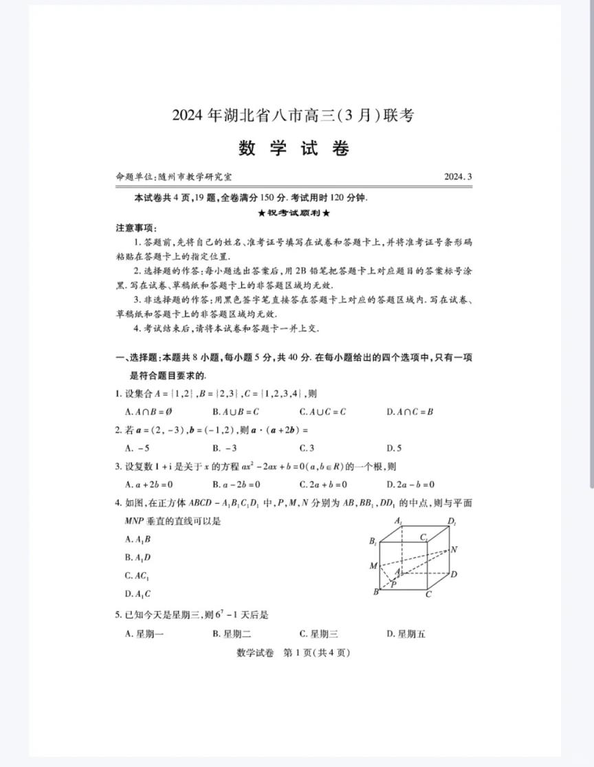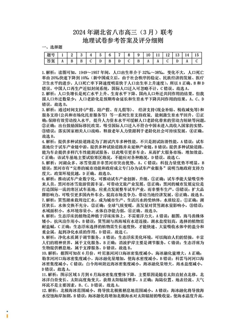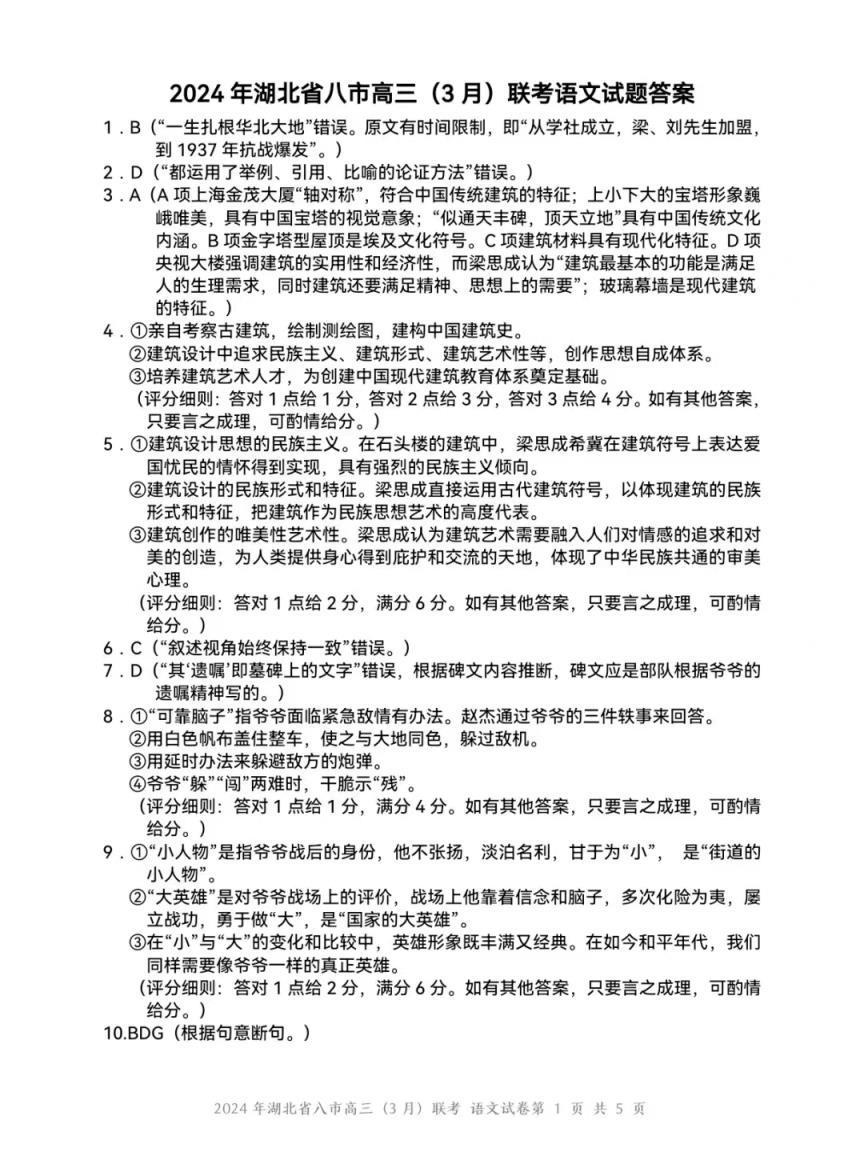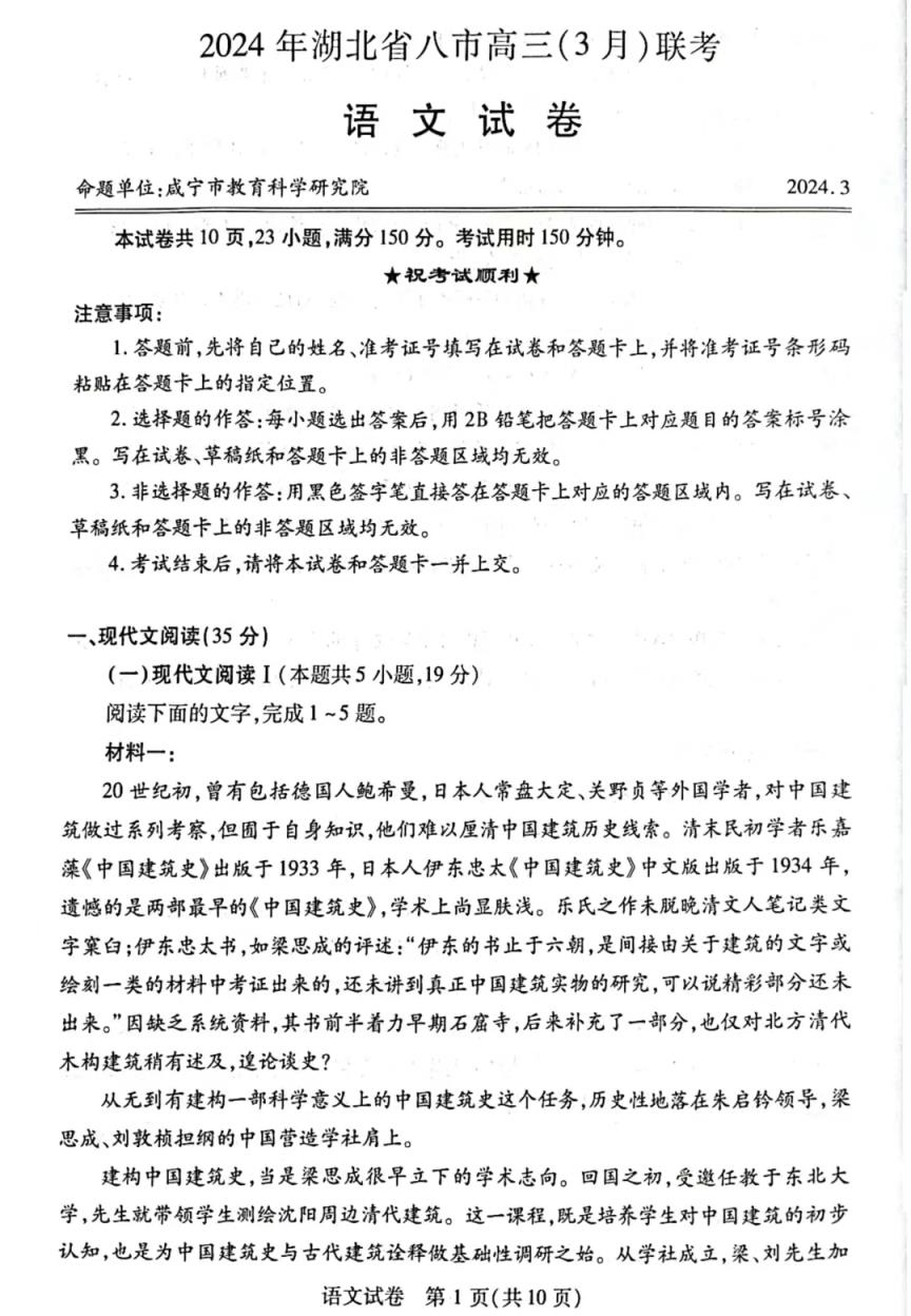 以下是2024年湖北省八市高三(3月)聯(lián)考試題及答案解析,考生們可據(jù)此預(yù)估本次考試成績,并針對薄弱科目進行查漏補缺。