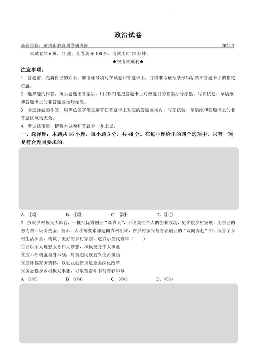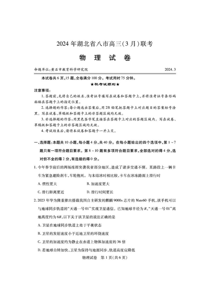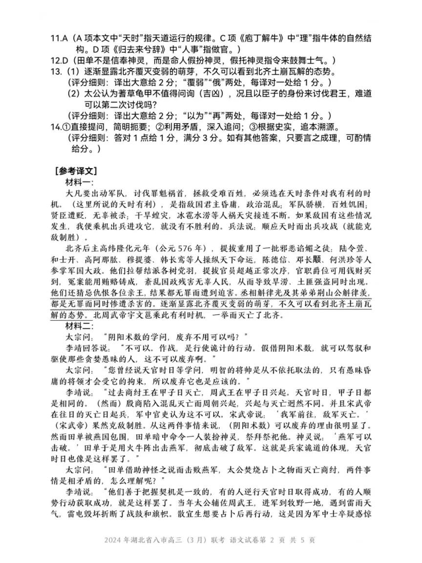 以下是2024年湖北省八市高三(3月)聯(lián)考試題及答案解析,考生們可據(jù)此預(yù)估本次考試成績,并針對薄弱科目進行查漏補缺。