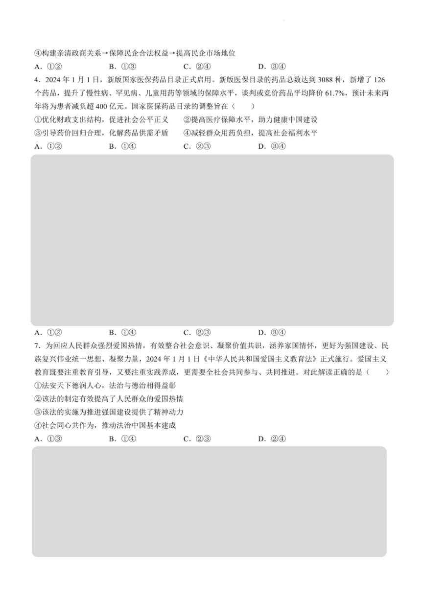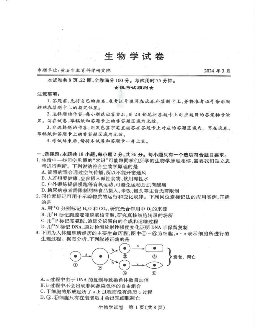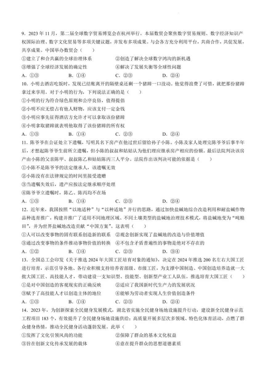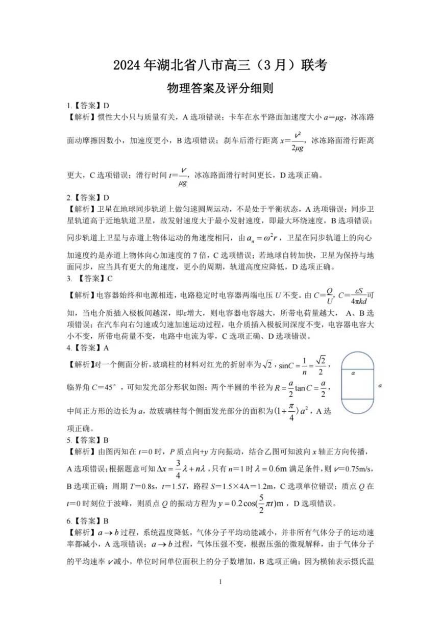 二、2024湖北省八市聯(lián)考試卷及答案匯總
