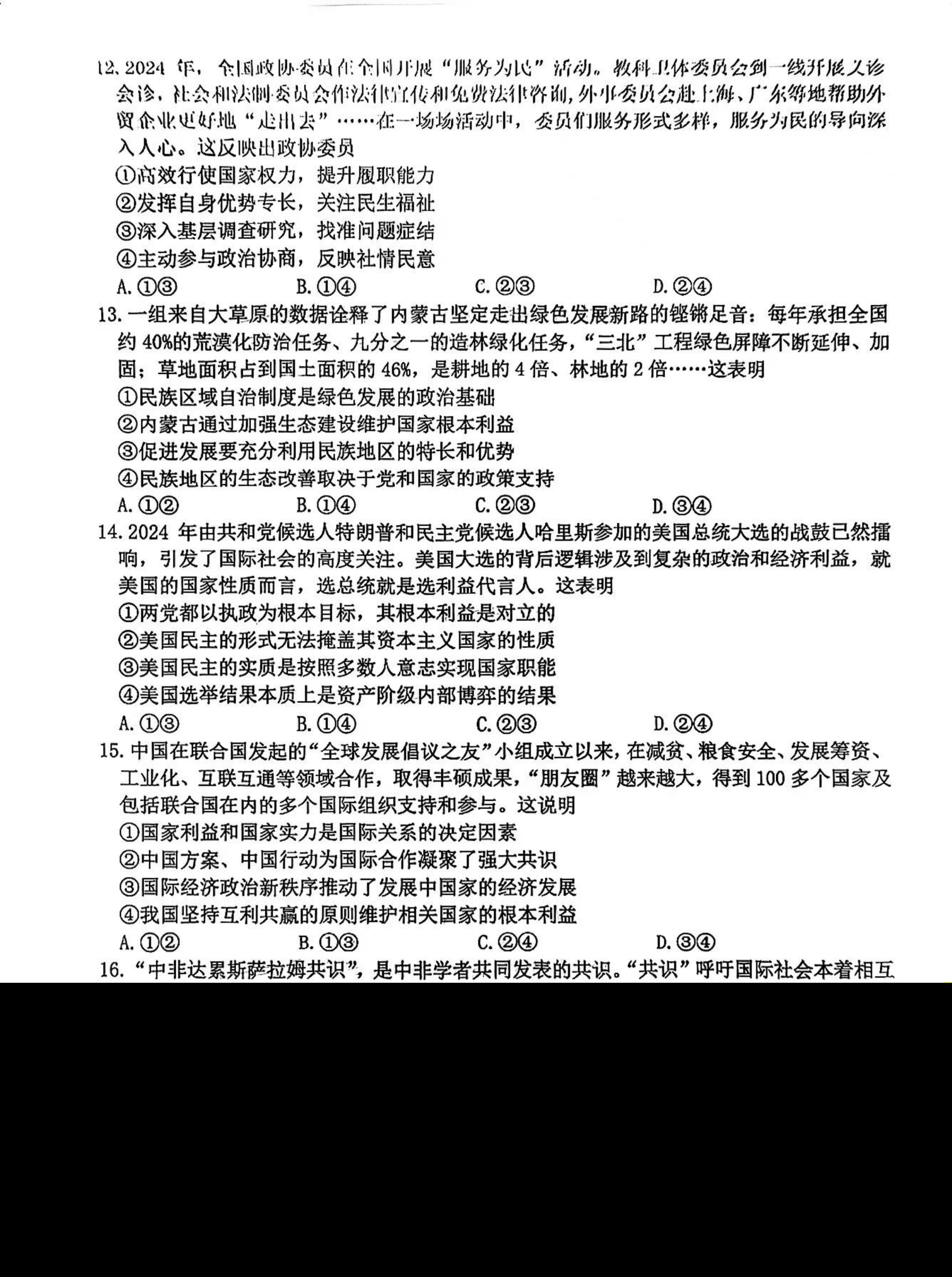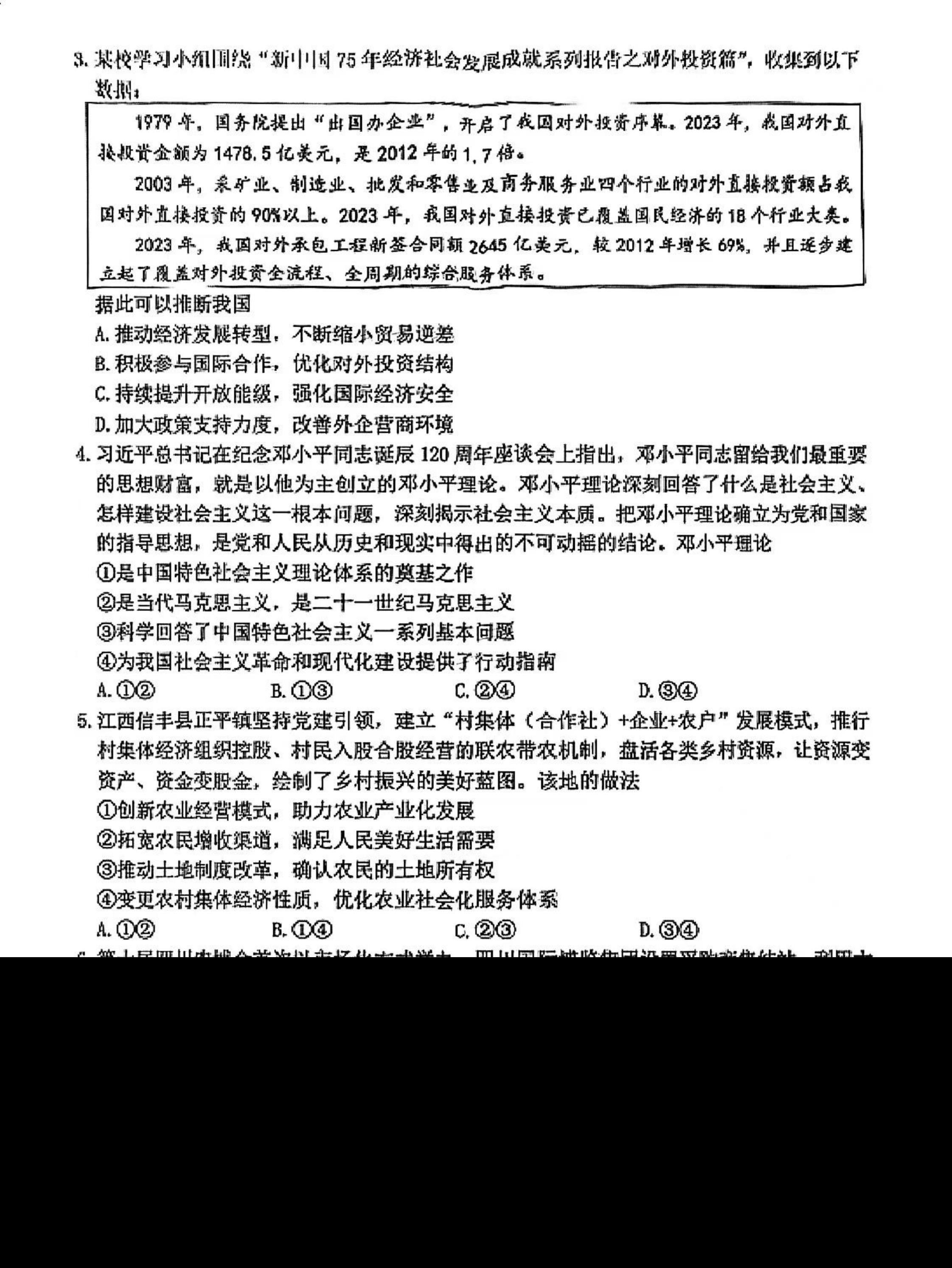 四、2025綿陽市一診考試答案(政治、地理、歷史)