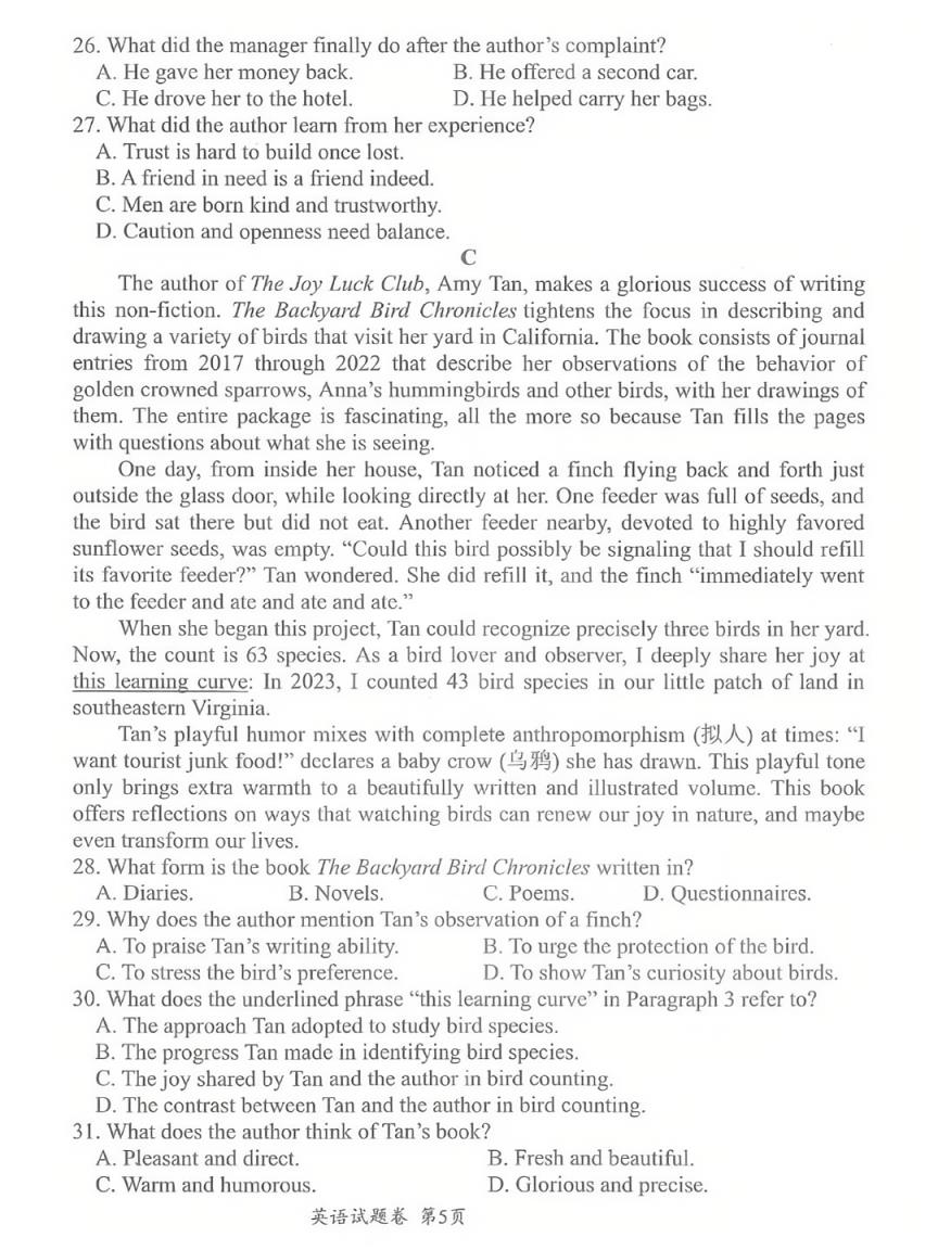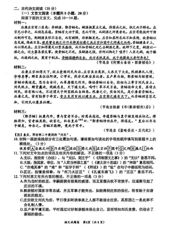 閱讀理解:包括論述類文本、文學類文本及文言文閱讀,總計41分。