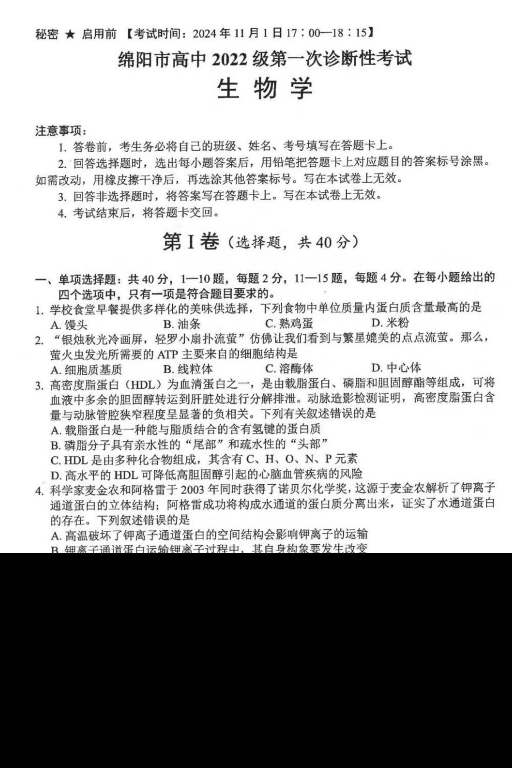 五、2025綿陽市一診考試答案(物理、化學、生物)