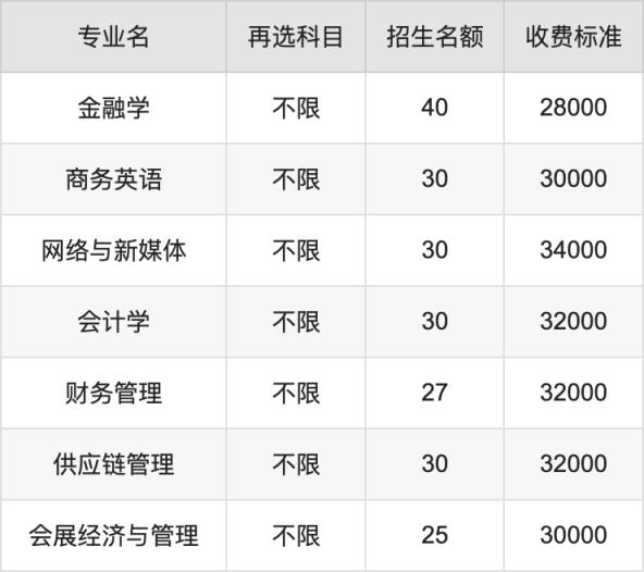 廈門華廈學(xué)院在歷史組本科批招生的各個(gè)專業(yè),每年的學(xué)費(fèi)是28000元-34000元。招生人數(shù)最多的專業(yè)是金融學(xué),2024年招40人,學(xué)費(fèi)是28000元。