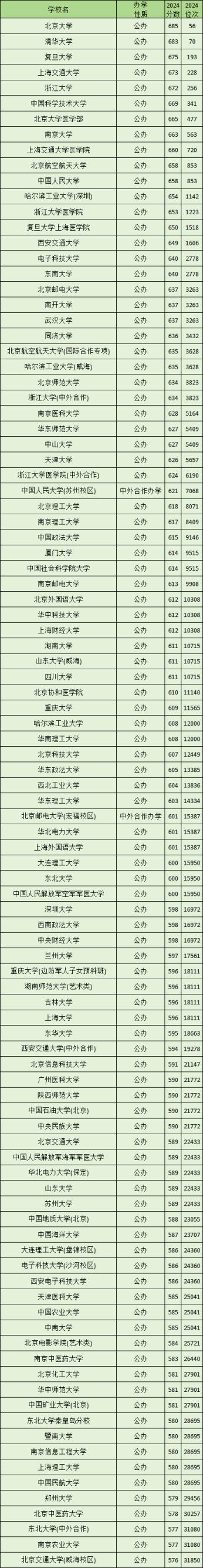 2024年全國部分重點(diǎn)大學(xué)錄取分?jǐn)?shù)線排名一覽表如下: