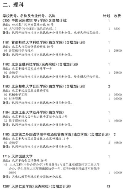 2024年四川二本征集志愿理科類補錄學校有中國民用航空飛行學院、北京工業(yè)大學耿丹學院、天津城建大學、渤海大學、長春工業(yè)大學、上海杉達學院、成都文理學院、三亞學院、四川工商學院等。