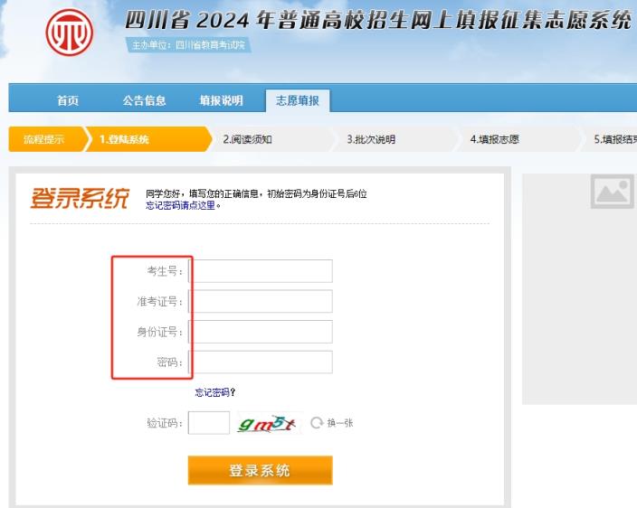 3、進入登錄界面之后,輸入對應的準考證號、考生號、身份證號、密碼等必要信息后即可登錄系統(tǒng)進行征集志愿的填報。