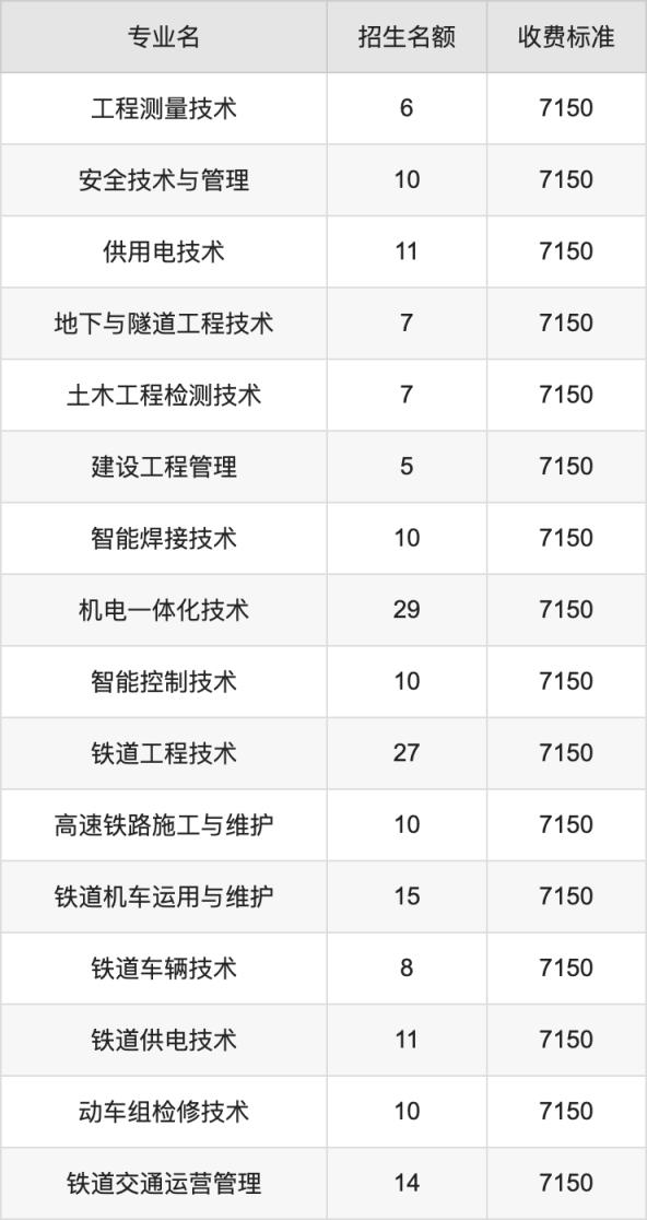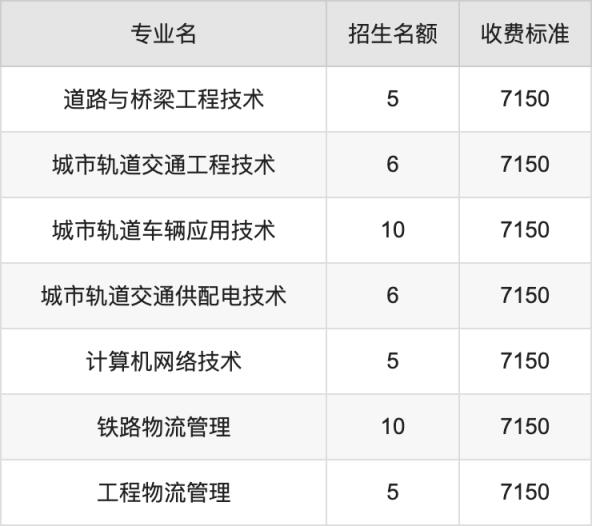 陜西鐵路工程職業(yè)技術(shù)學(xué)院理科高職專科批共計32個招生專業(yè),各專業(yè)每年的學(xué)費是7150元。