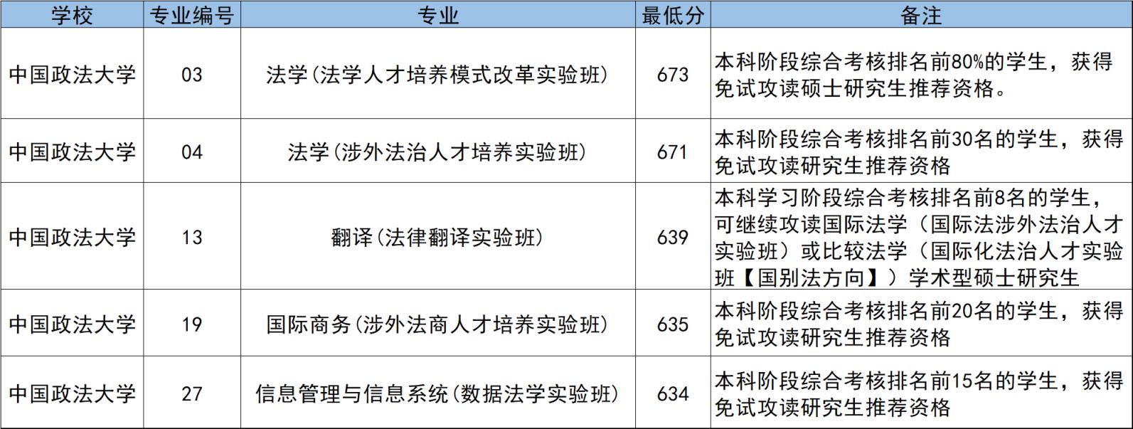 以中國政法大學(xué)為例,該校多個(gè)實(shí)驗(yàn)班都可獲得本碩連讀的資格,但推免對成績的要求很高,相當(dāng)于在學(xué)霸中挑學(xué)霸。從收分來看,不同班級分?jǐn)?shù)差距比較大,但都在630分以上(2024年遼寧物理類)。