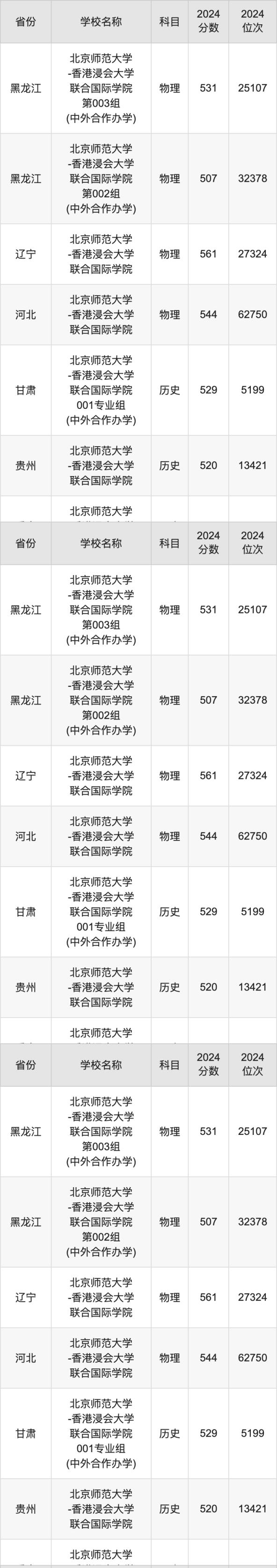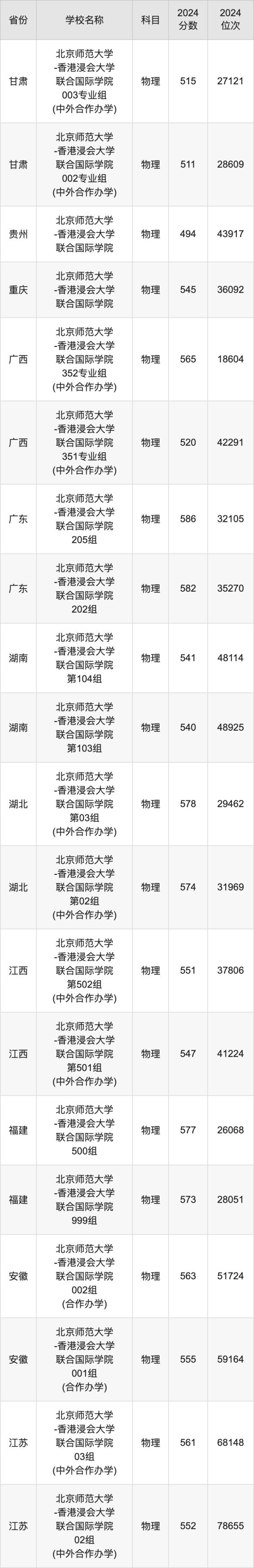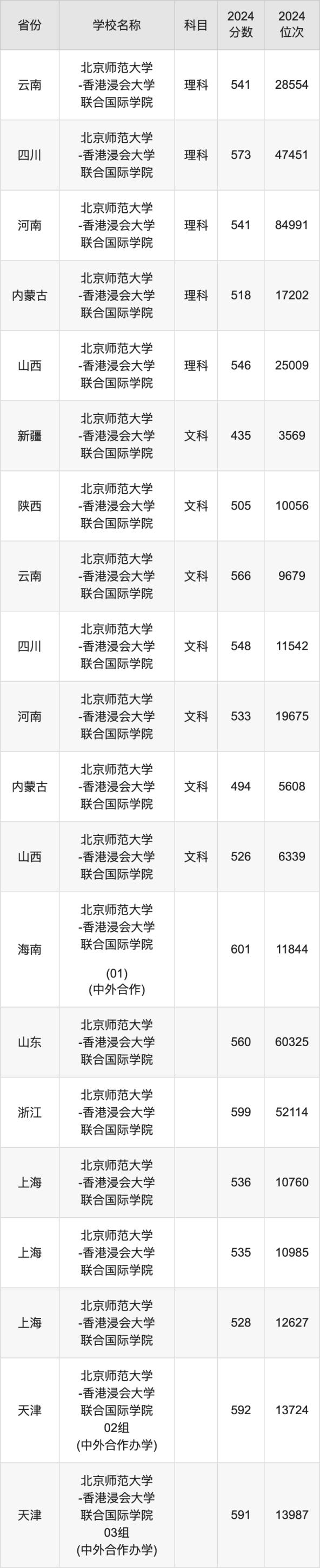 一、2024北京師范大學-香港浸會大學聯合國際學院錄取分數線