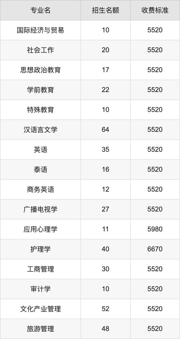 成都大學在文科本科一批招生的各個專業(yè),每年的學費是5520元。招生人數(shù)最多的專業(yè)是漢語國際教育,2024年招45人,學費是5520元。