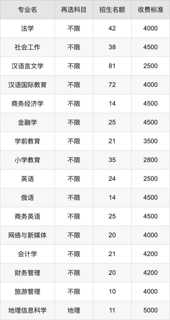 哈爾濱學(xué)院在歷史組本科批招生的各個(gè)專業(yè),每年的學(xué)費(fèi)是2500元-5000元。招生人數(shù)最多的專業(yè)是漢語(yǔ)言文學(xué),2024年招81人,學(xué)費(fèi)是2500元。