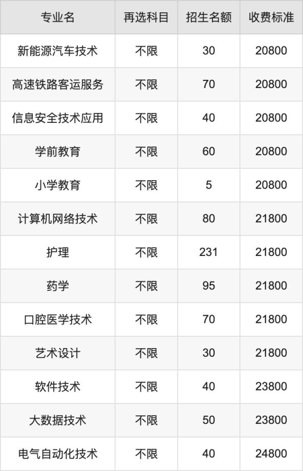 湖南電子科技職業(yè)學(xué)院在歷史組高職??婆猩母鱾€(gè)專業(yè),每年的學(xué)費(fèi)是18300元-24800元。招生人數(shù)最多的專業(yè)是護(hù)理,2024年招231人,學(xué)費(fèi)是21800元。