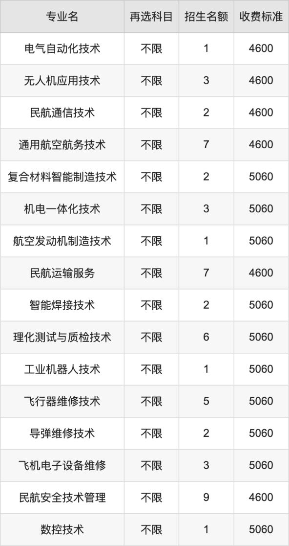 長沙航空職業(yè)技術學院在歷史組高職專科批招生的各個專業(yè),每年的學費是4600元-5060元。招生人數(shù)最多的專業(yè)是民航安全技術管理,2024年招9人,學費是4600元。