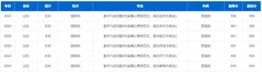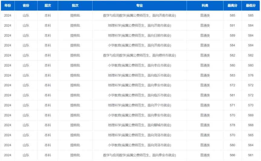 2024年臨沂大學(xué)省屬公費(fèi)師范生普通類錄取分?jǐn)?shù)線在543-651分之間,錄取分?jǐn)?shù)最低的是數(shù)學(xué)與應(yīng)用數(shù)學(xué)專業(yè),面向聊城市就業(yè)。