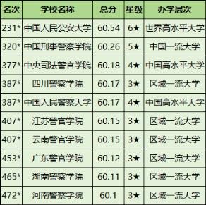 根據(jù)2024年校友會排名顯示,中國十大名牌警校中排名第一的是中國人民公安大學(xué),在全國排名中排第231名;排名第二的是中國刑事警察學(xué)院,在全國排名中排第320名;排名第十的是河南警察學(xué)院,在全國排名中排第472名。