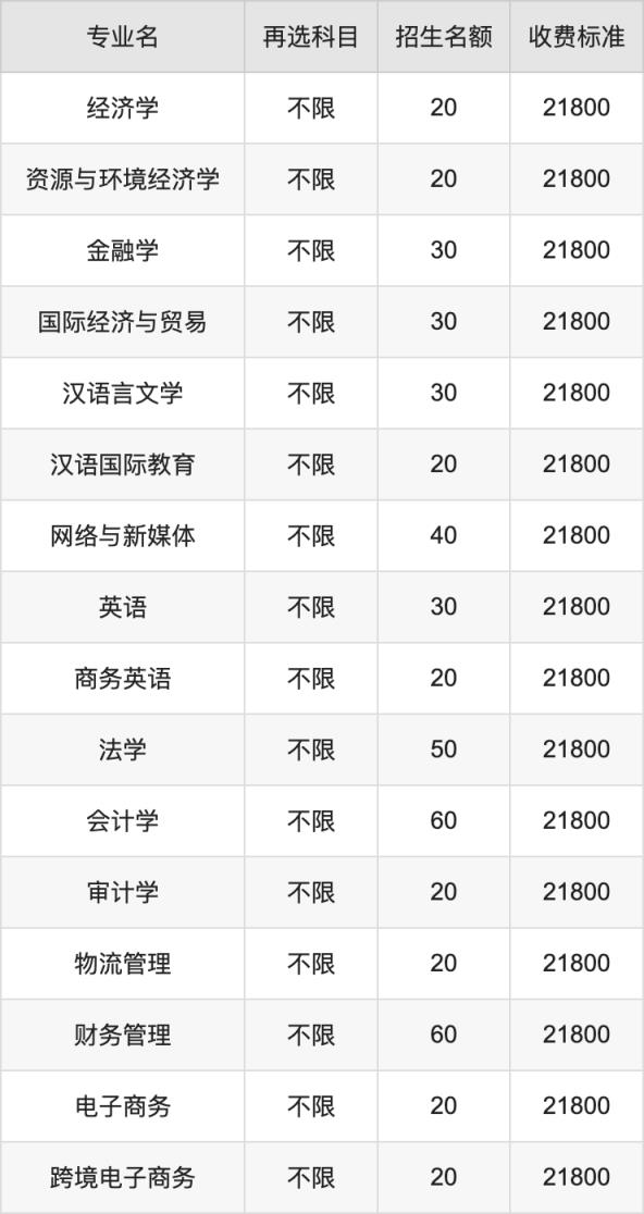 12.國際經(jīng)濟(jì)與貿(mào)易:學(xué)費(fèi)是21800元