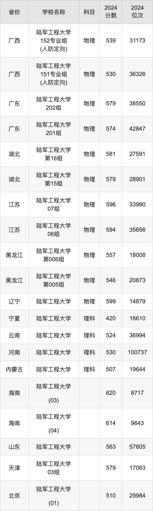 2024陸軍工程大學(xué)錄取分?jǐn)?shù)線匯總:全國(guó)各省最低多少分能上