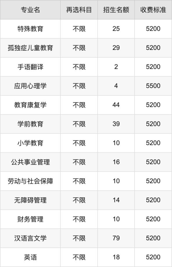 二、南京特殊教育師范學(xué)院各專業(yè)收費(fèi)標(biāo)準(zhǔn)