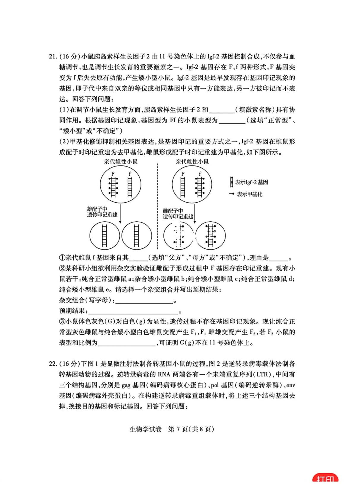 (2)湖北七市州聯(lián)考生物試卷及答案