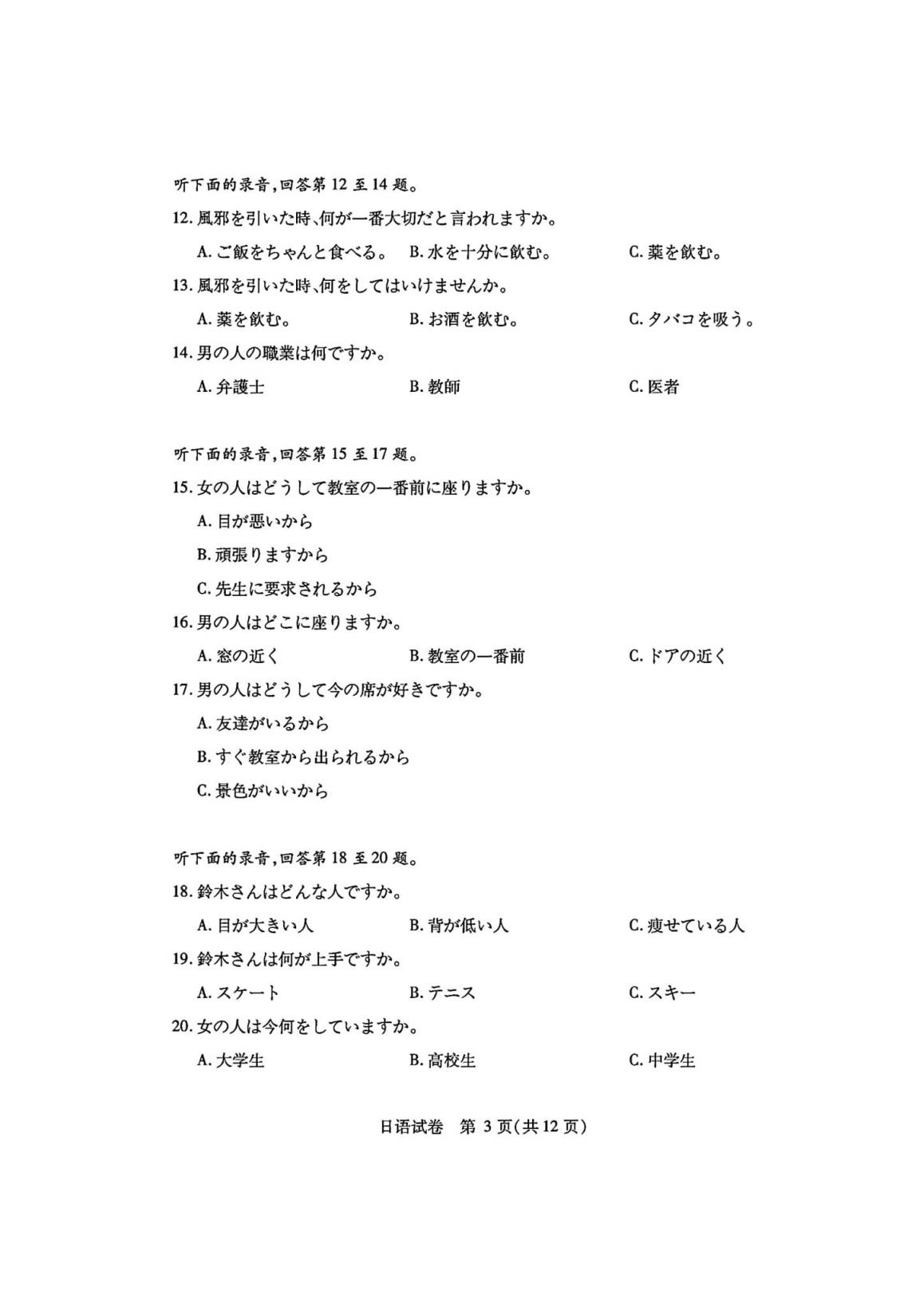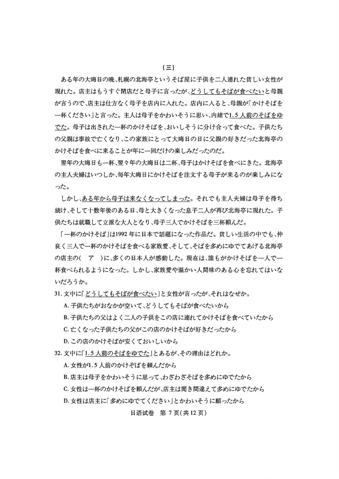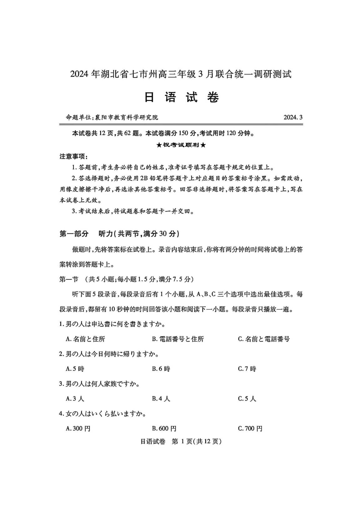四、湖北省七市州聯(lián)考2024英語/日語試題及答案解析