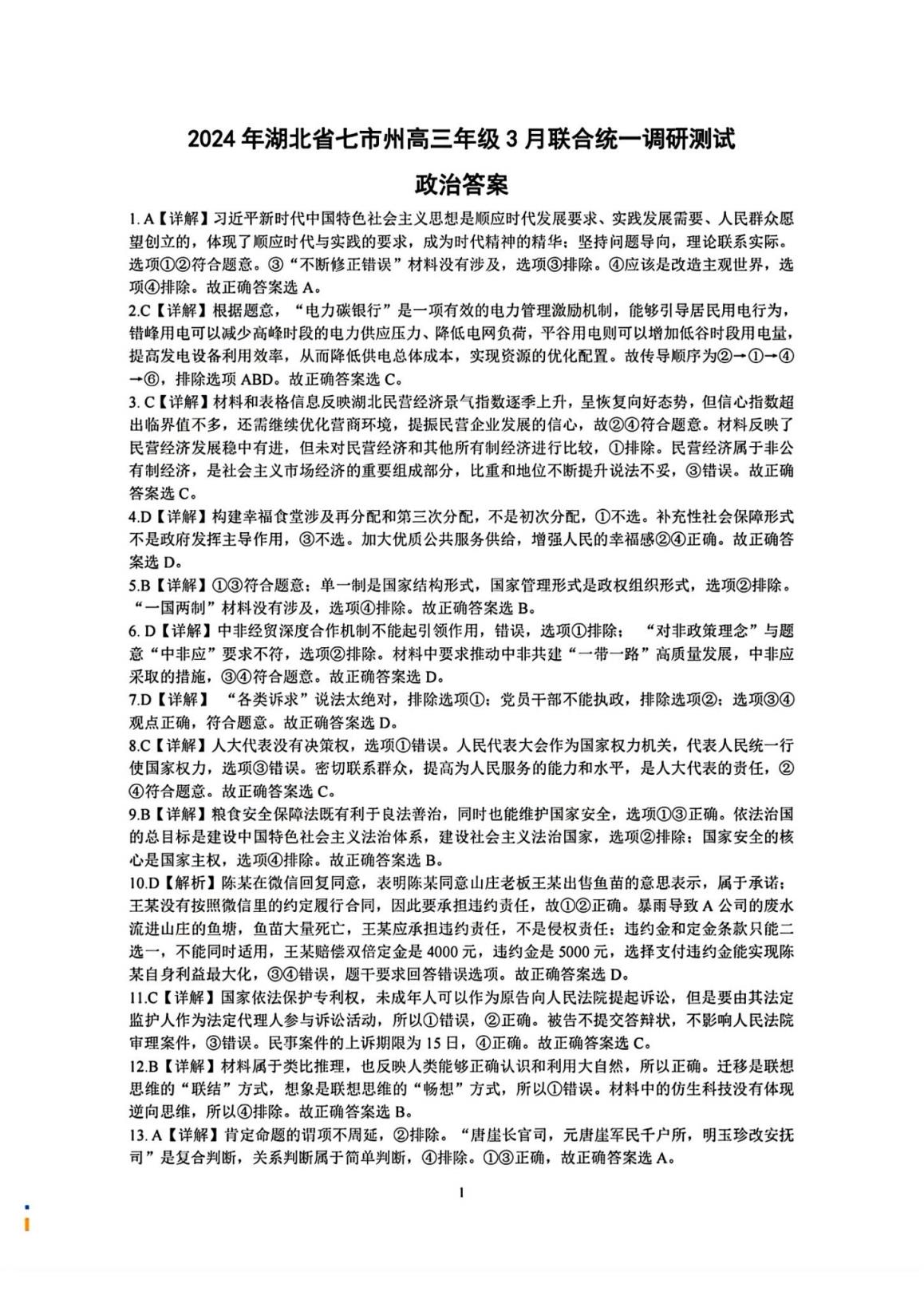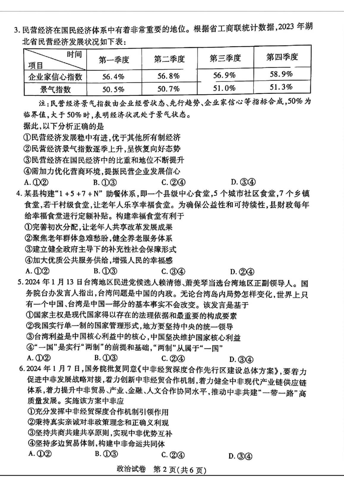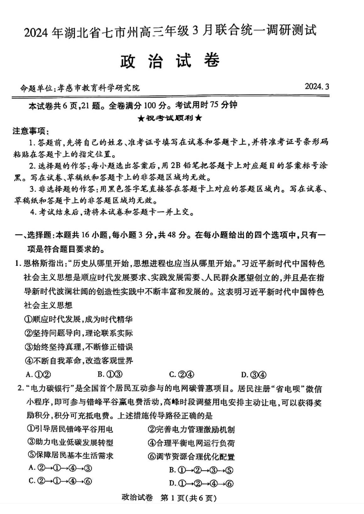 (3)湖北七市州聯(lián)考政治試卷及答案
