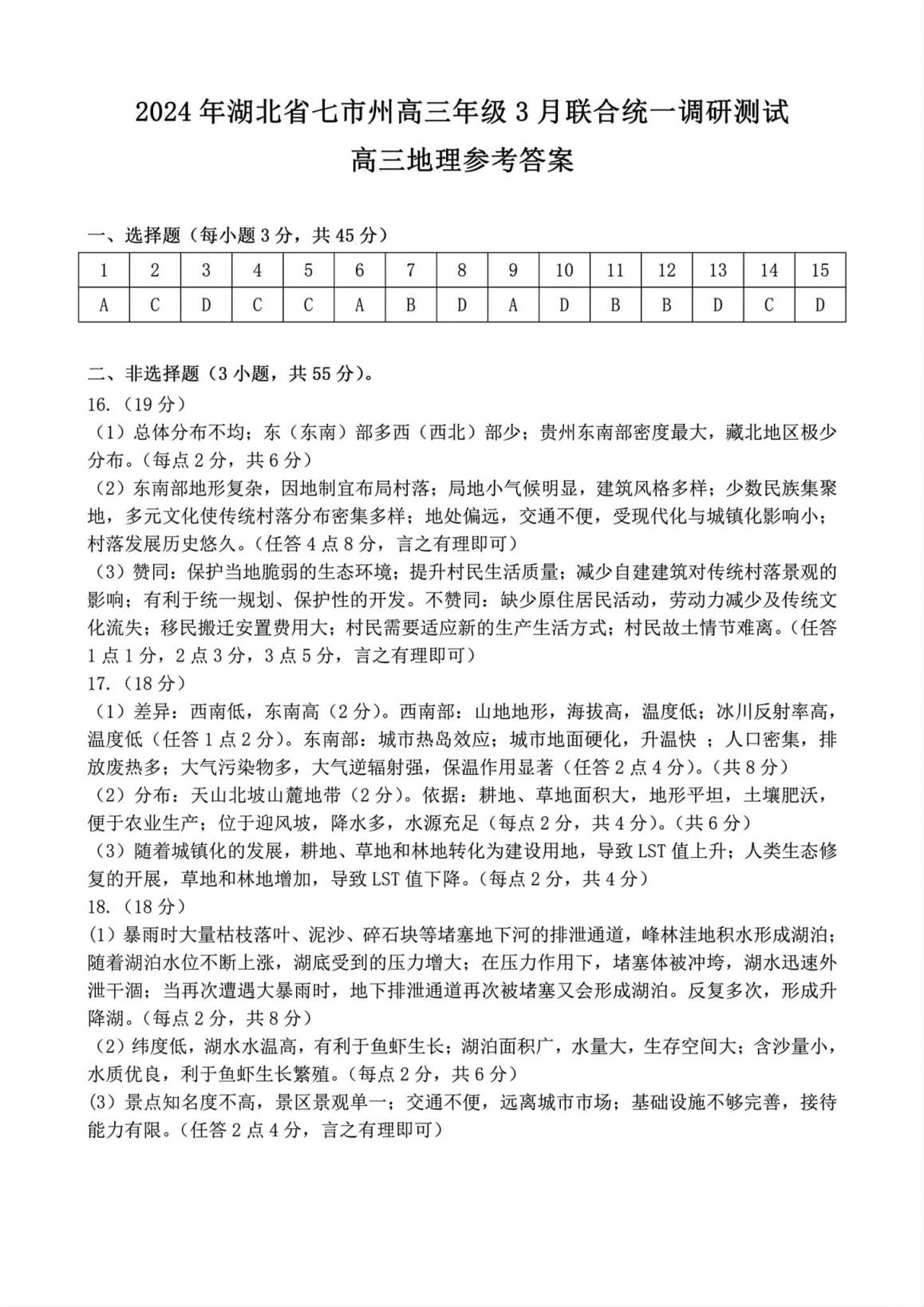 湖北省七市州聯(lián)考將于3月12日至3月13日舉行,包含了九門考試科目,分別是語文、數(shù)學、英語、物理、歷史、政治、地理、生物、化學。為幫助湖北荊州、荊門、宜昌、恩施等七市州的高三考生核對答案,小燈塔在下文展示了湖北七市州聯(lián)考試題及答案,供參考。