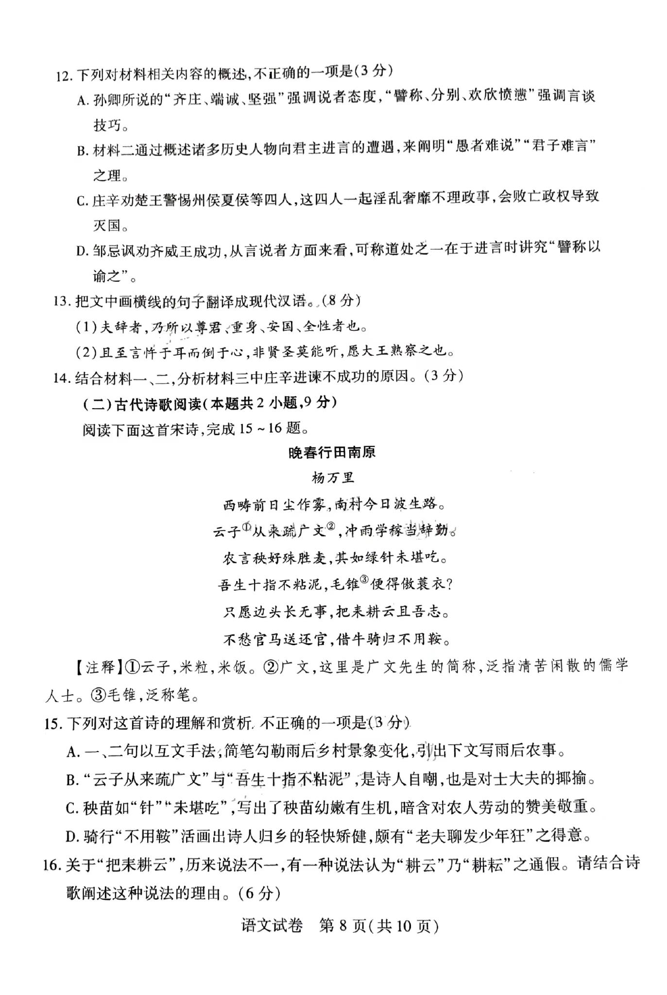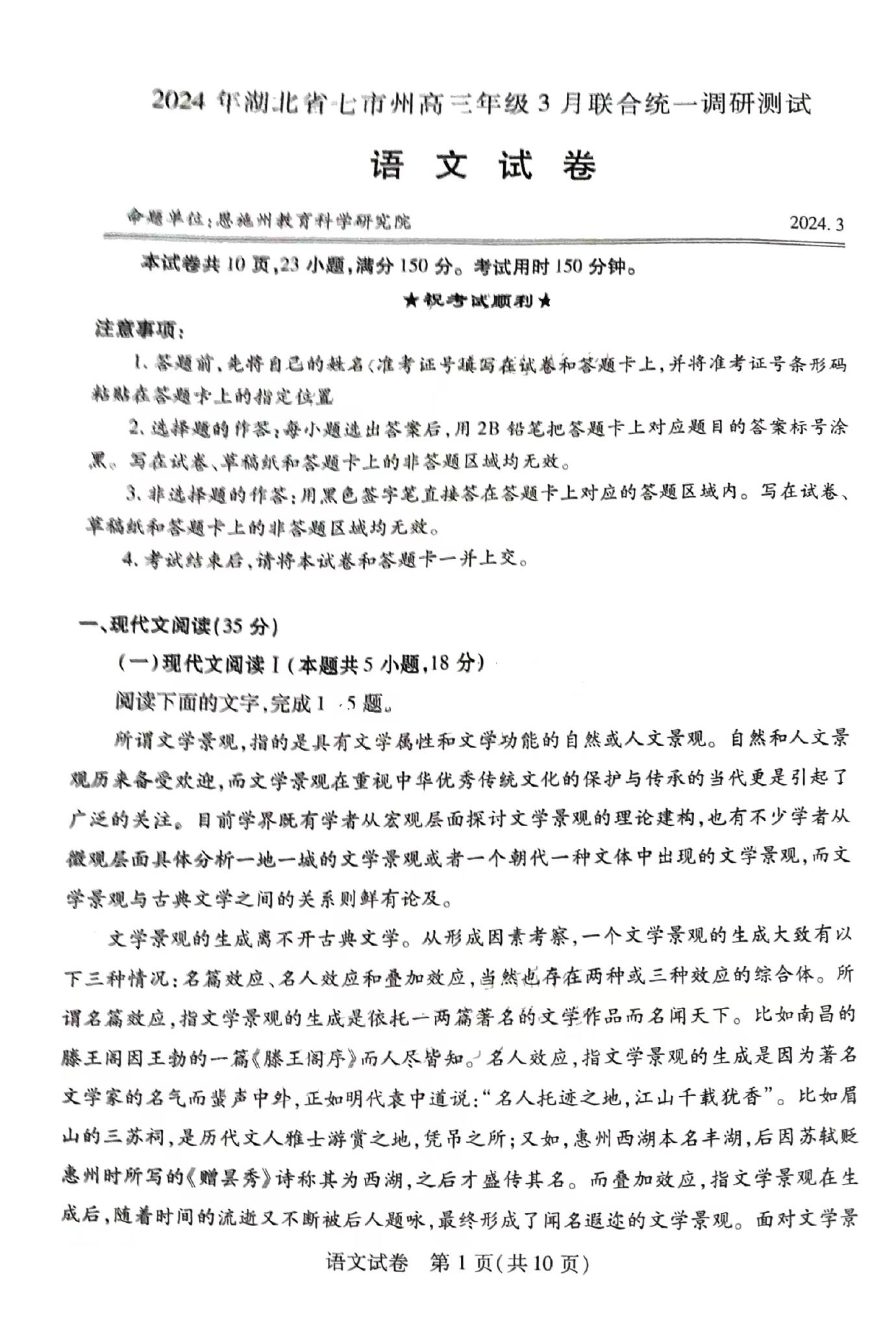二、湖北省七市州聯(lián)考2024語文試題及答案解析