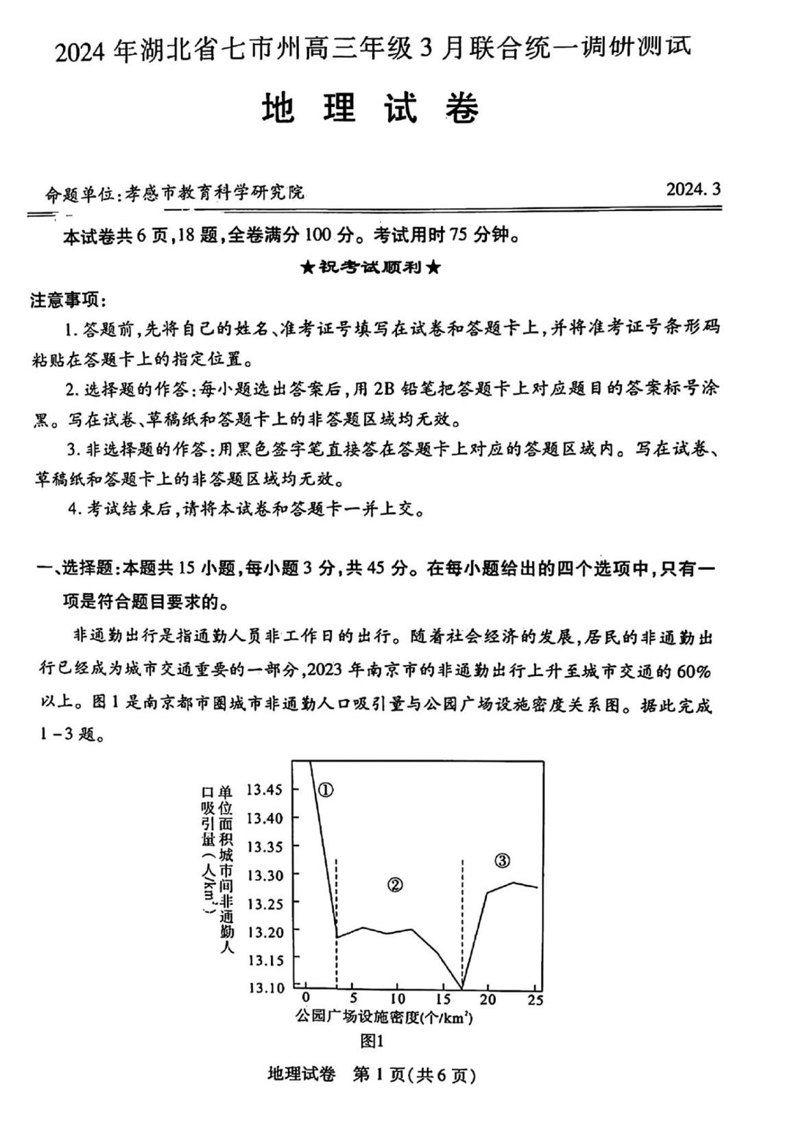 (4)湖北七市州聯(lián)考地理試卷及答案
