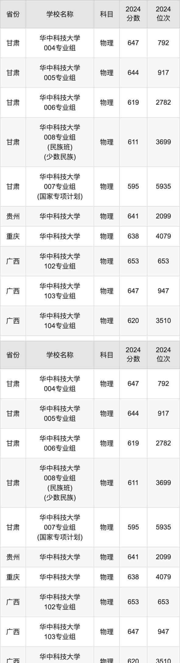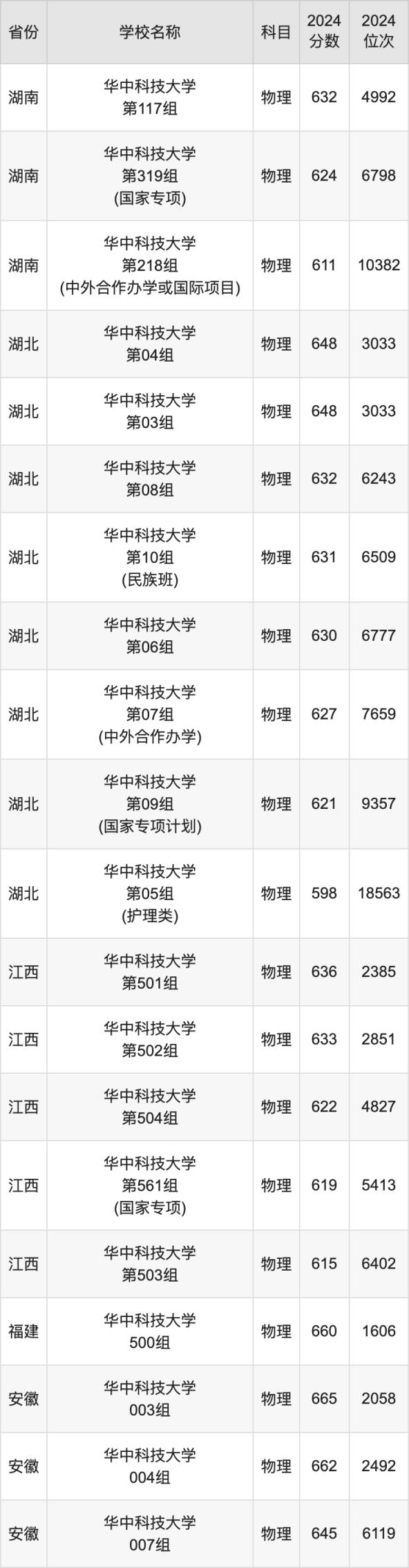 華中科技大學(xué)2024年有9個(gè)專業(yè)組面向湖北省內(nèi)首選了物理科目的考生招生,第04組的收分最高,分?jǐn)?shù)線達(dá)648分,選科要求是化學(xué),招生專業(yè)包含臨床醫(yī)學(xué)、口腔醫(yī)學(xué)。第05組(護(hù)理類)的錄取分?jǐn)?shù)線最低,2024年為598分,選科要求是化學(xué),招生專業(yè)包含護(hù)理學(xué)。